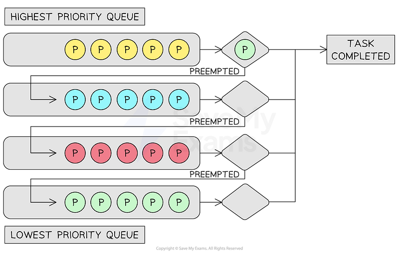 단계는 우선순위(priority)에 의해 나뉜다. 각 큐 마다 지정된 우선도가 있으며, 해당 우선도를 가진 스레드를 큐에 넣고 관리하는 것이다. 해시 테이블처럼.